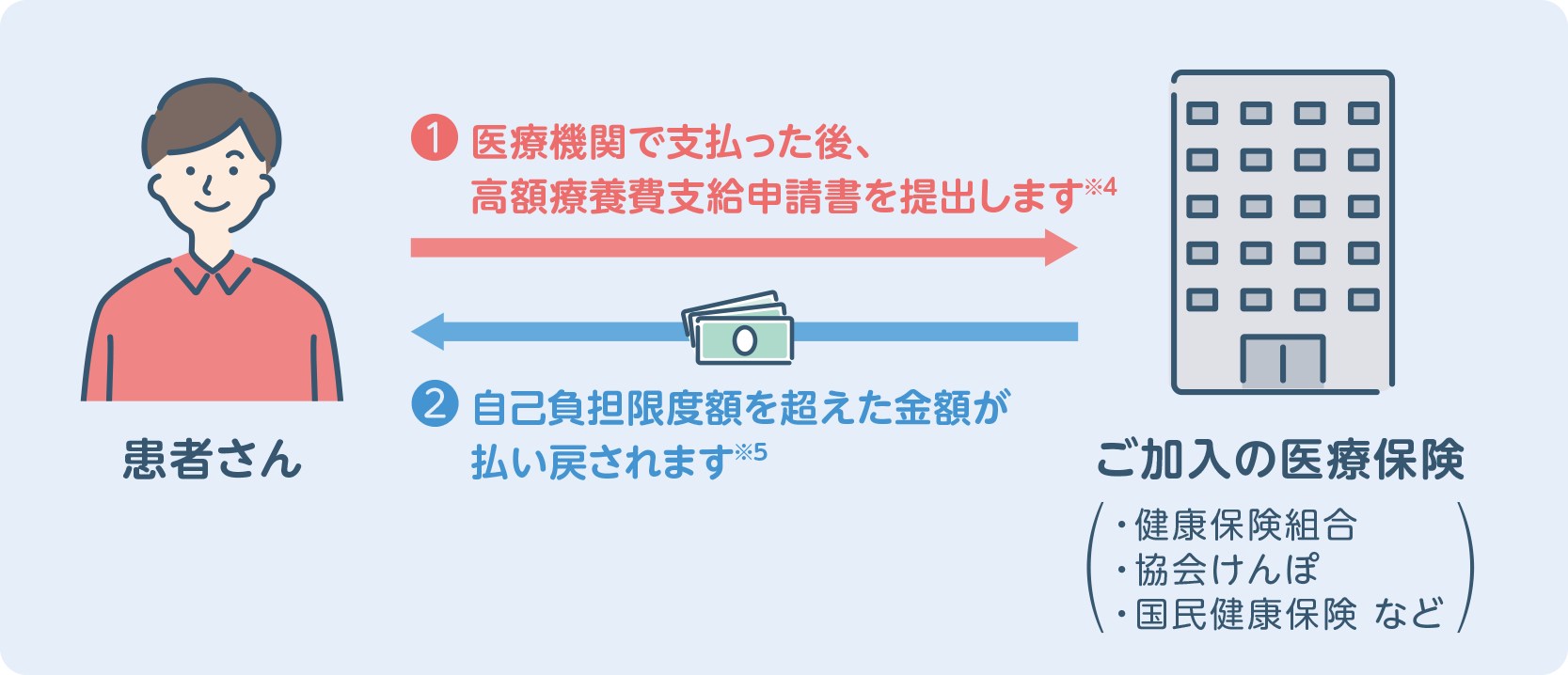 医療費を支払った後に、加入している医療保険に申請すると、